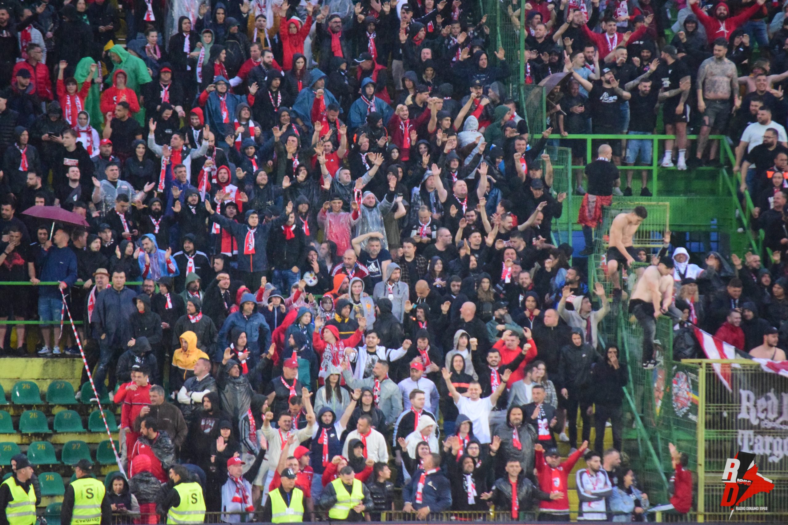 Fanii dinamoviști au început să anime atmosfera încă dinainte de fluierul de start și au cântat din adâncul inimii, în ciuda ploii cel puțin neplăcute.
