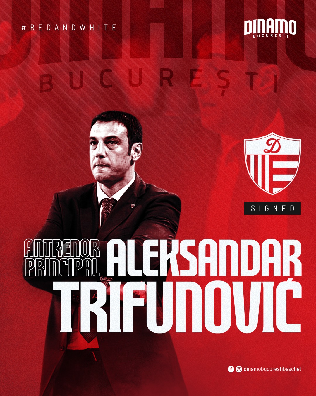 ,,Aleksandar Trifunovic este noul antrenor al echipei noastre! Tehnicianul sârb a semnat astăzi cu Dinamo și va fi la cârma echipei pentru un sezon ce se anunță cu totul aparte. Trifunovic este un antrenor cu pedigree și experiență în baschetul european. Acesta a antrenat echipe precum Lietuvos Rytas, BC Zalgiris Kaunas, Pinar Karsiyaka iar cel mai recent a ocupat postul de antrenor secund la puternica echipa BC Khimki din Moscova.