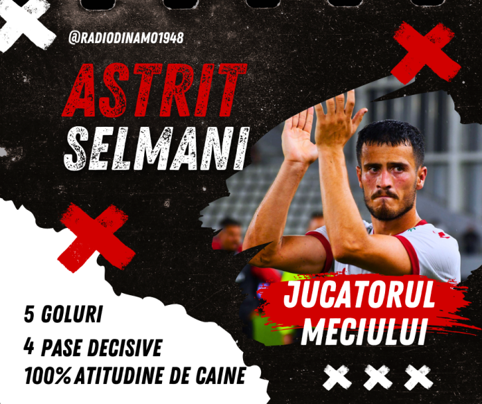 A obținut un penalty, a marcat și a ajuns la 5 reușite în această ediție de campionat. Totodată, este lider la capitolul assist-uri în Superliga, cu 4 în dreptul său. Așadar, 9 goluri create de atacantul din Kosovo, ireal dacă ținem cont de ceea ce s-a întâmplat acum câteva luni, când toată suflarea dinamovistă îl dorea plecat de la echipă. În momentul de față, Selmani este cel mai productiv jucător din Superliga, peste Mitriță de la Craiova.