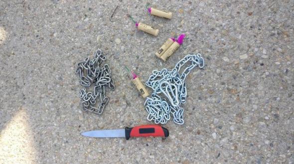 Tot in imagine observam de asemenea si „lanturile” gasite asupra suporterilor. Interesante capturi dar nu arata deloc asa periculos precum au vrut sa le prezinte cei de la Jandarmerie.