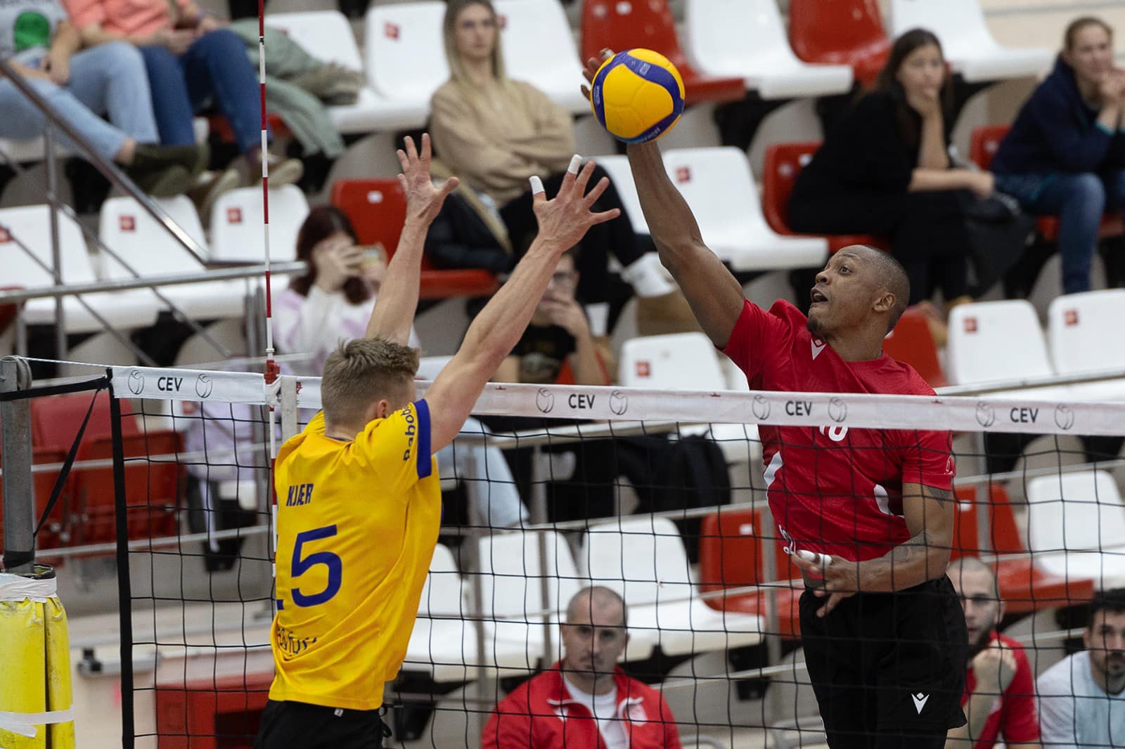 Elevii lui Stelian Moculescu au condus cu 2-1 la seturi, dar și-au pierdut concentrarea. Au ratat o minge de meci la 24-23, în setul 4, iar apoi au cedat în decisiv, 13-15. În optimi vor avea meci cu bulgarii de la Levski Sofia, care au câștigat la masa verde duelul cu israeliții de la H. Mate Asher.