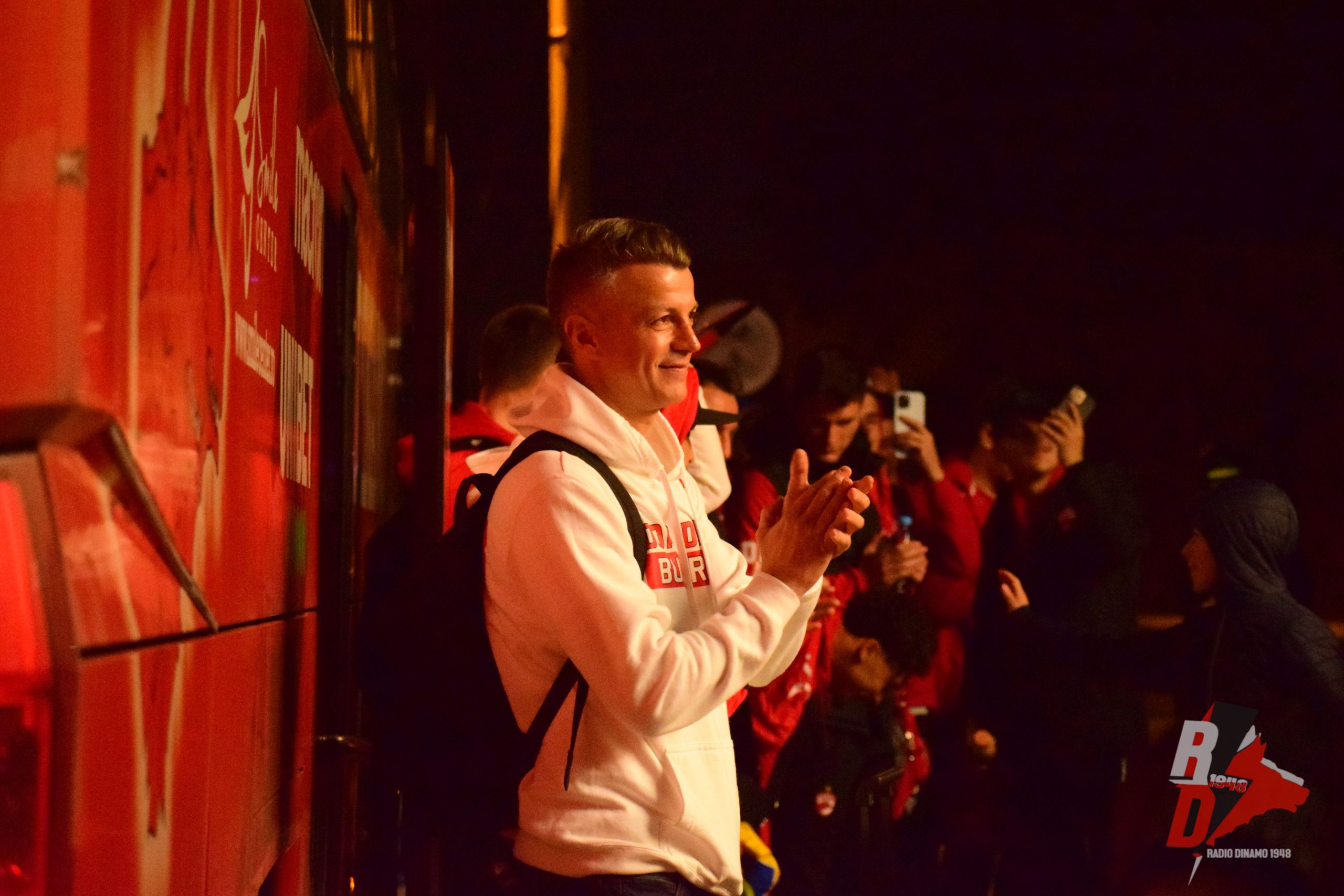 Peste 50 de suporteri i-au așteptat în parcarea hotelului și au cântat cu jucătorii și Ovidiu Burcă. La final, colegul nostru Bogdan Alecu a transmis și un mesaj de susținere pentru jucători și Ovidiu Burcă.