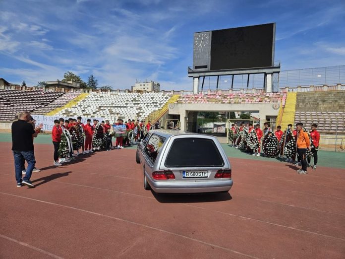 Simbolic, copiii crescuți în structurile CS Dinamo au mers în fața mașinii mortuare și au transportat coroanele de flori depuse în ultimele două zile.
